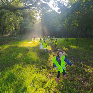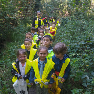 Ils ont pu se ressourcer parmi les jolis paysages de ce début d'automne. Ils ont participé joyeusement à la chasse aux trésors (constituée d'objets sympathiques naturels et artificiels à trier ensuite). Ensuite, ils ont exalté leurs cinq sens par diverses petites activités, découvert plusieurs animaux de la forêt, ramassé puis classé les déchets par matière (surtout en classe ensuite) et se sont adonnés à quelques jeux sportifs de plein air.