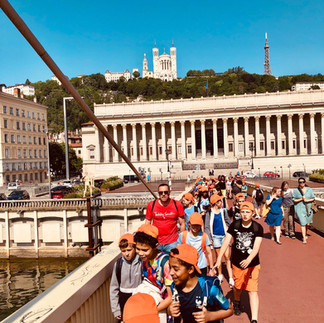 Ce mardi 6 juin, les 3 classes de CM1/CM2 se sont rendues à Lyon en train. Après une balade dans le quartier du Vieux-Lyon, les élèves ont embarqué à bord d'un bateau électrique afin de profiter d'une visite guidée d'une partie de la capitale des Gaules depuis la Saône.